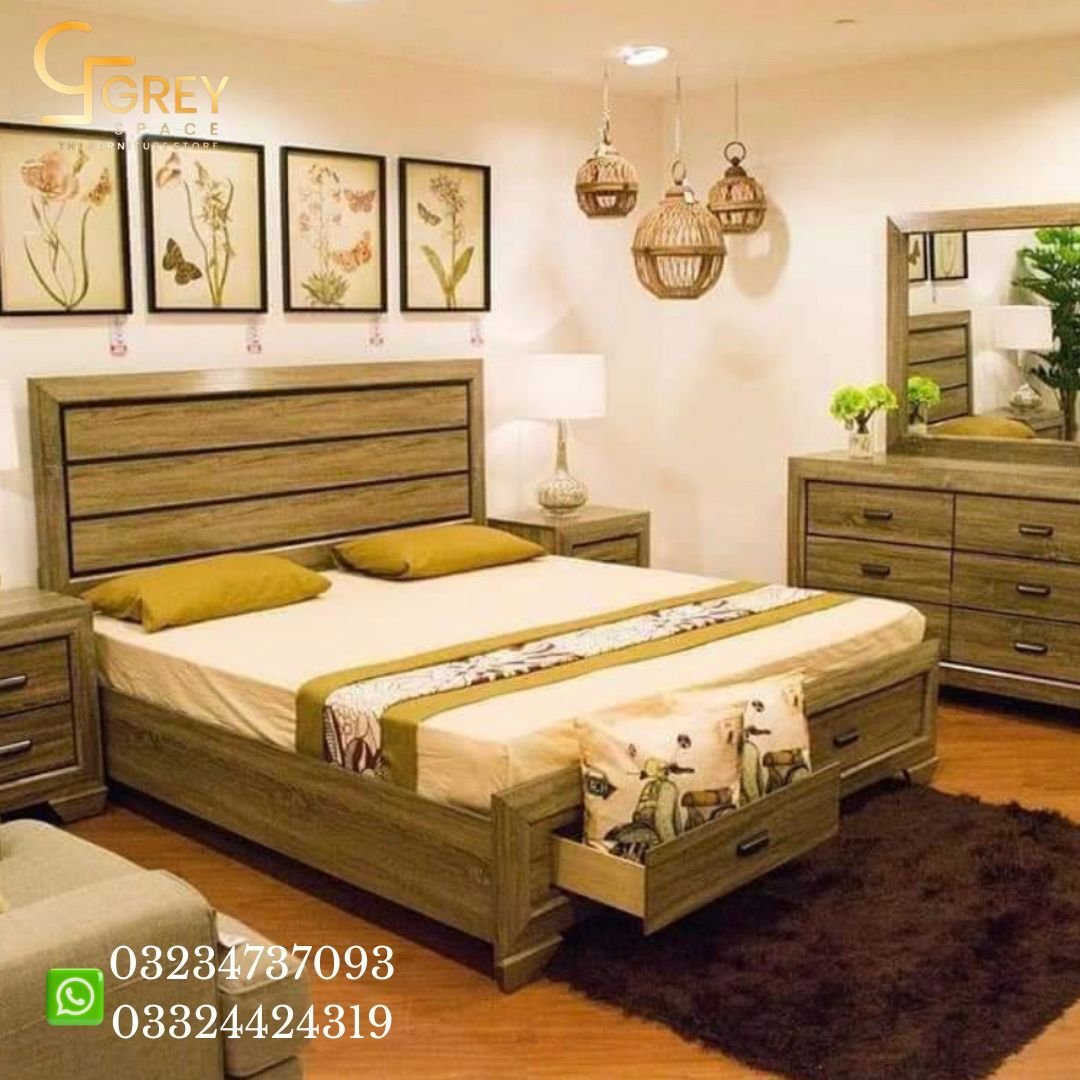 King Size / Queen Size 2 Side Table Dressing Table Solid Wooden Structure Imported Fabric & Leather Used Beautiful Carve Design High-Quality Polish Used Color, Fabric, and Size Customizable